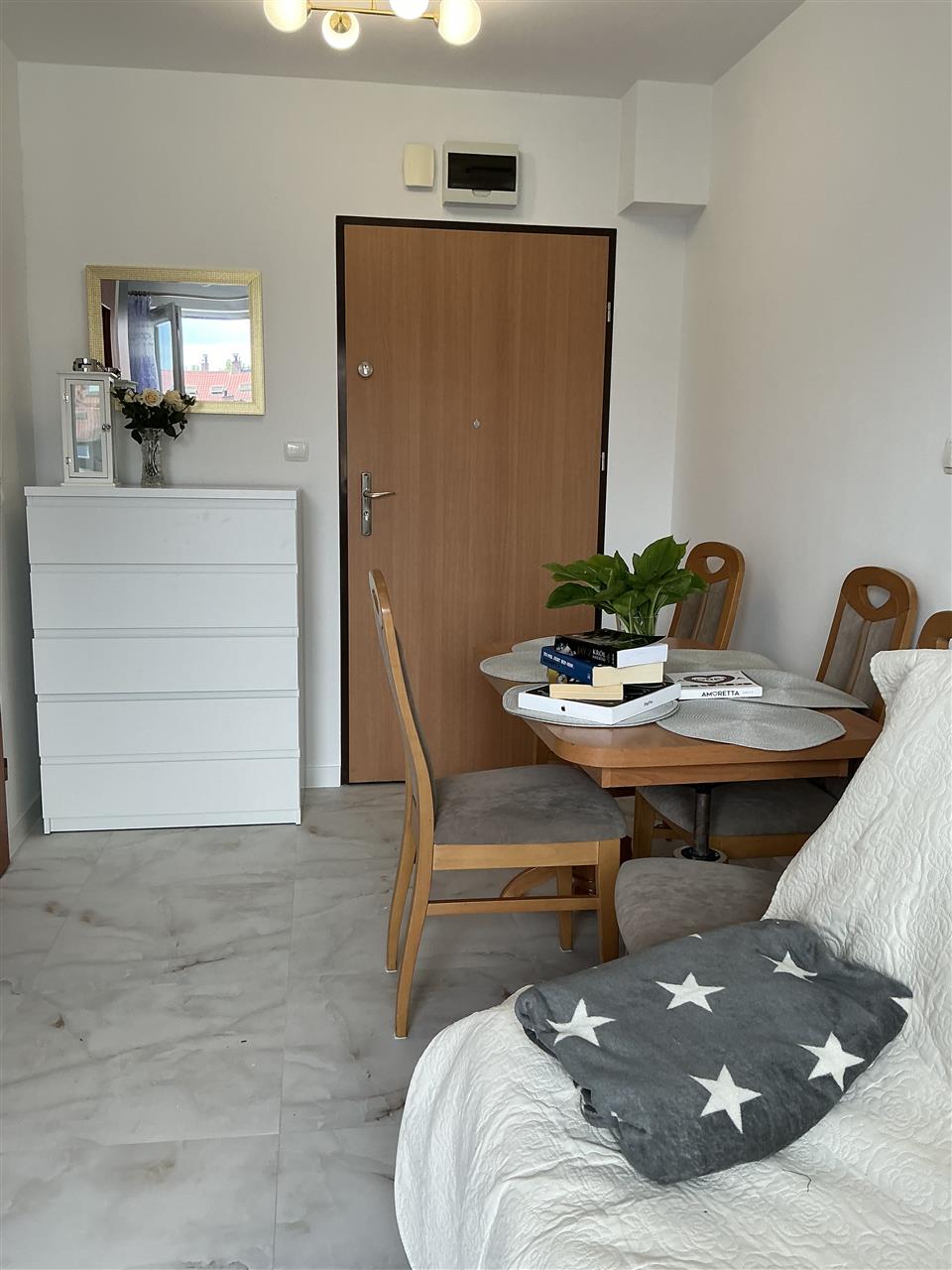 Mieszkanie wyposażone i urządzone. Na wyposażeniu kuchnia w pełni umeblowana, lodówka, płyta grzewcza elektryczna ( bez piekarnika ) . W pokoju sofa typy finka, stół , 4 krzesła, komoda, szafa. W łazience kabina prysznicowa.( brak pralki)