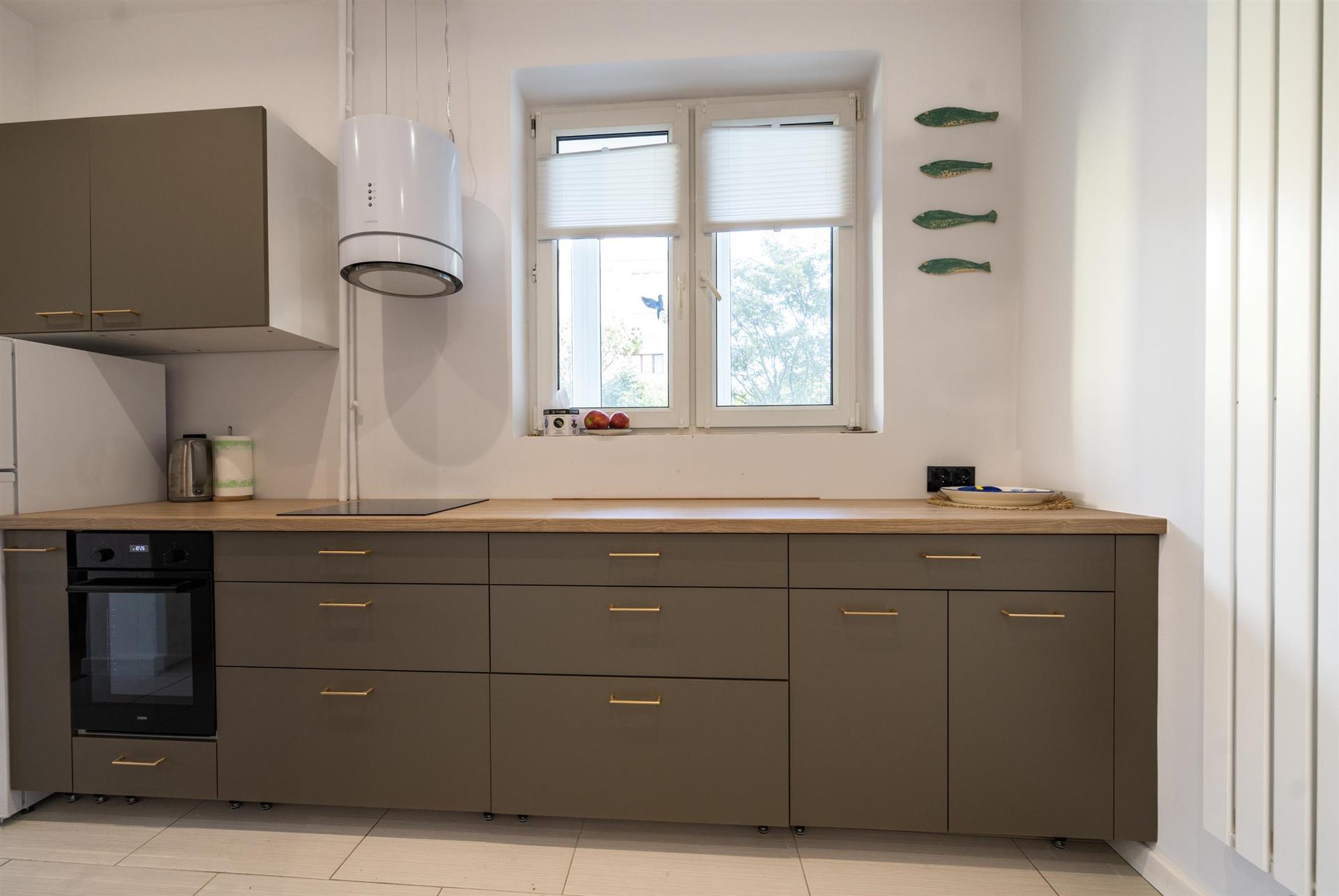 Kuchnia umeblowana i wyposażona, nowe meble wykonane na zamówienie.
